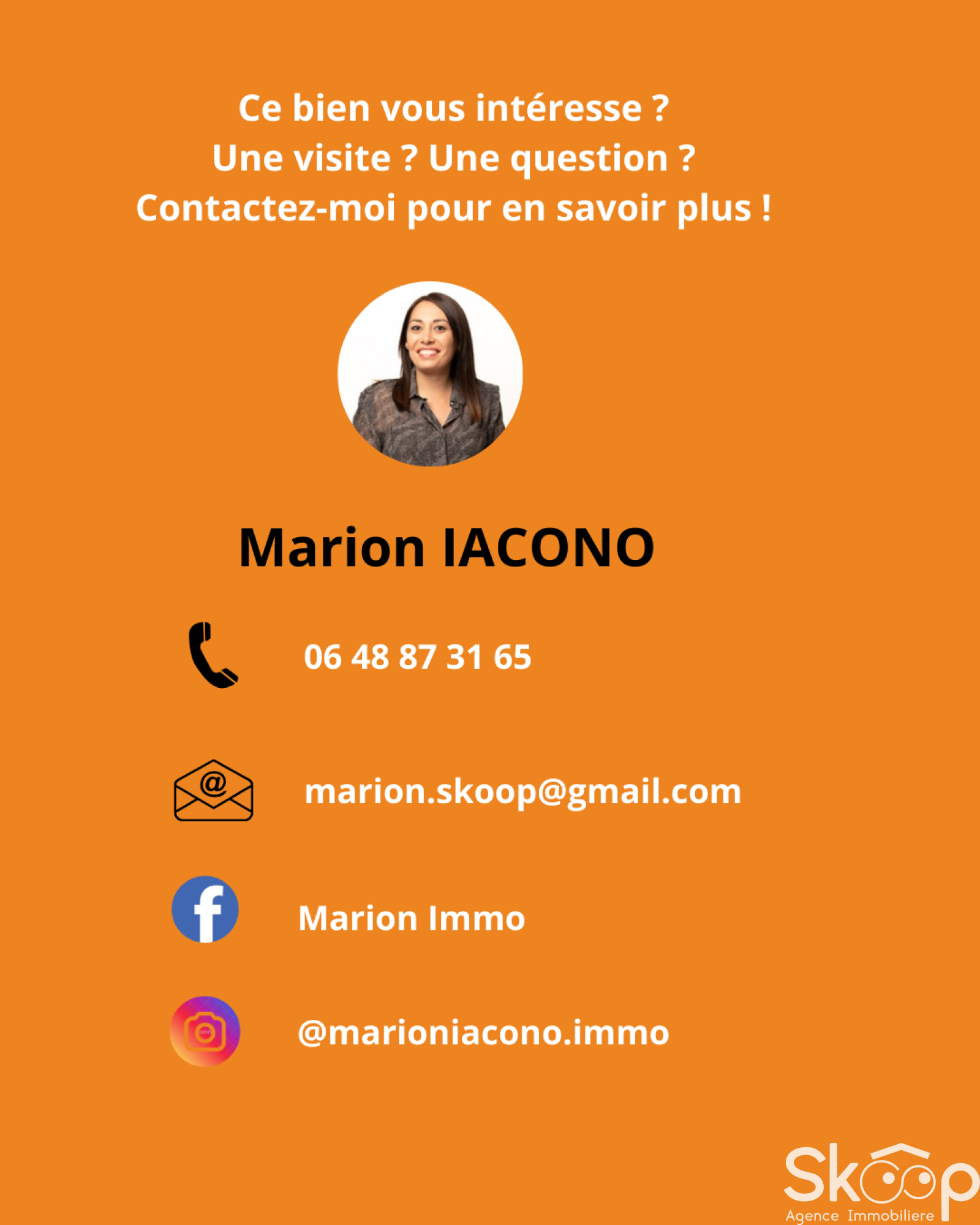 Pour plus de renseignements ou organiser une visite, contactez Marion IACONO (agent commercial immatriculé au RSAC de Montpellier 882261381) au 06 48 87 31 65