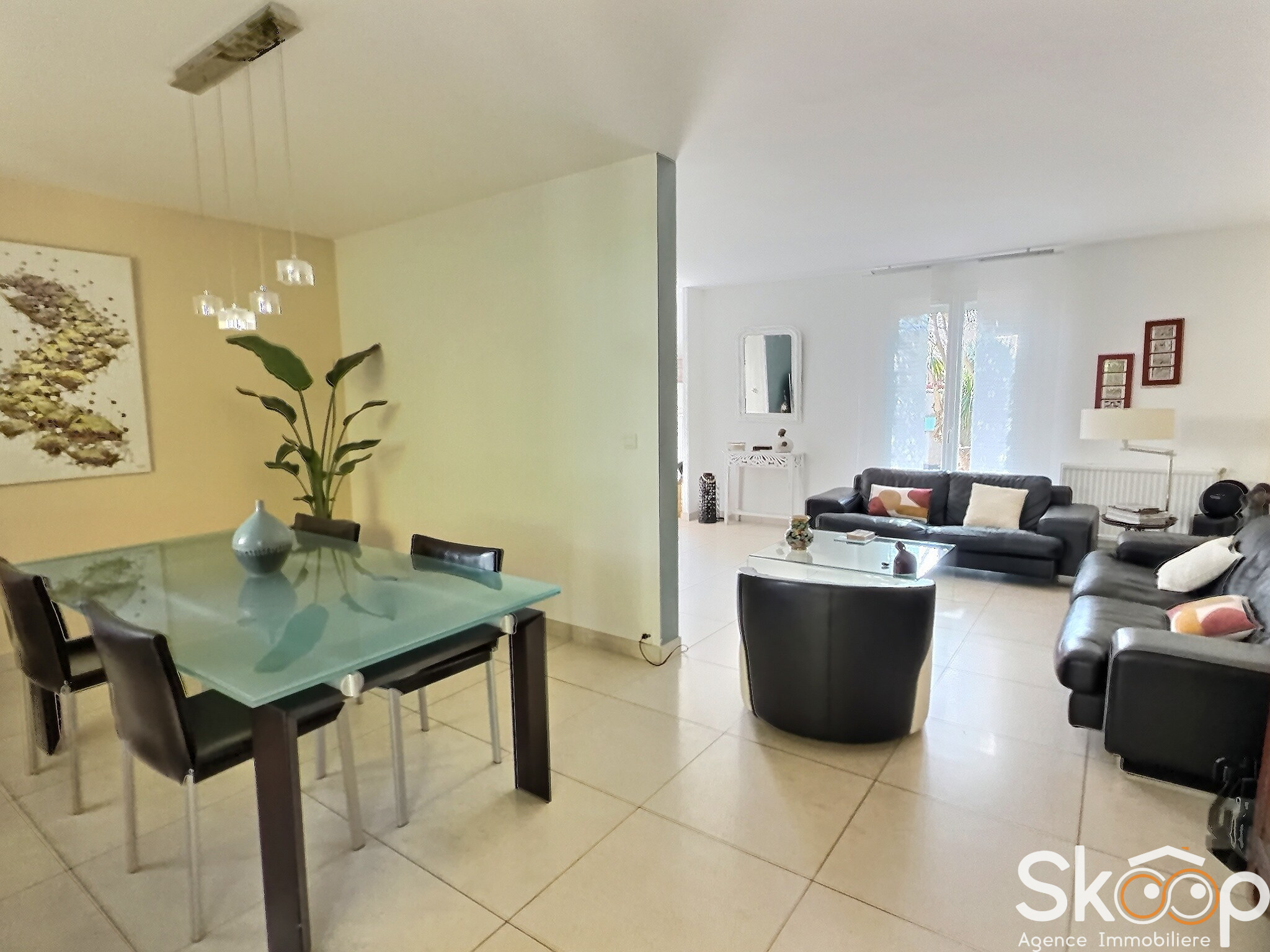 Située dans un quartier calme à Teyran, à 8 minutes à pied des commerces (boulangerie, supérette, pharmacie...) et à 5 minutes des écoles et du collège de Jacou. MAISON 4 pièces de 106 m2 habitable sur une parcelle arborée et paysagée de 600 m2 sans vis à vis avec piscine.