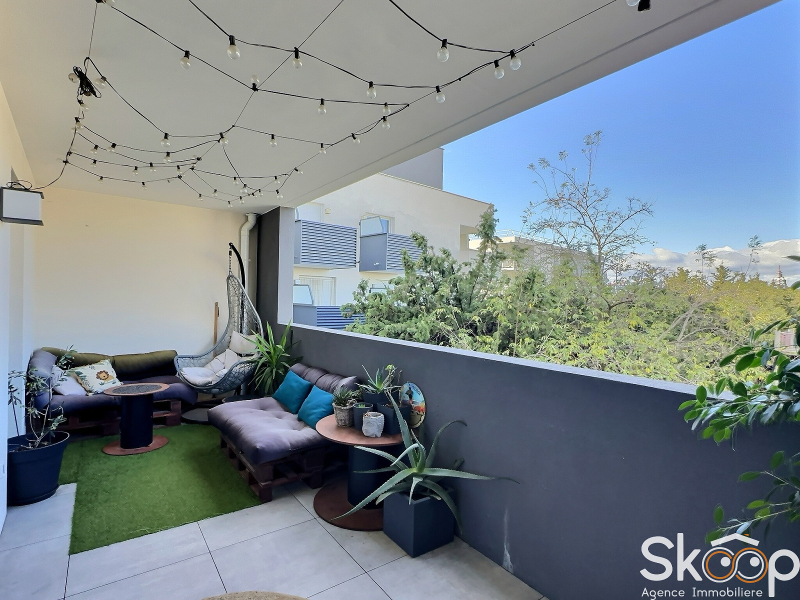 Vous profiterez d'un balcon de 12,95 m² exposée Nord Ouest avec vue dégagée.