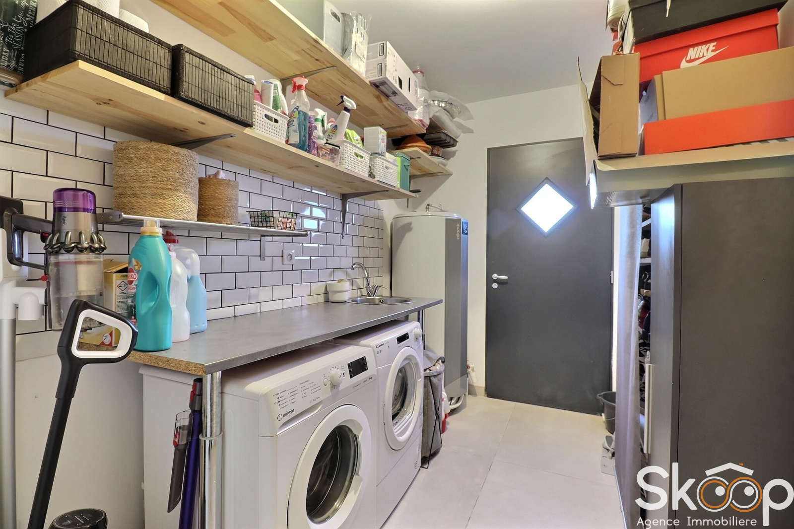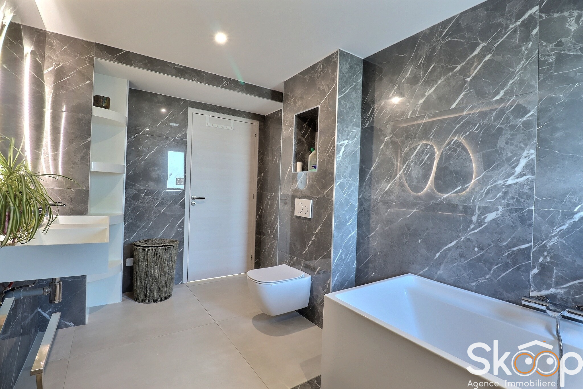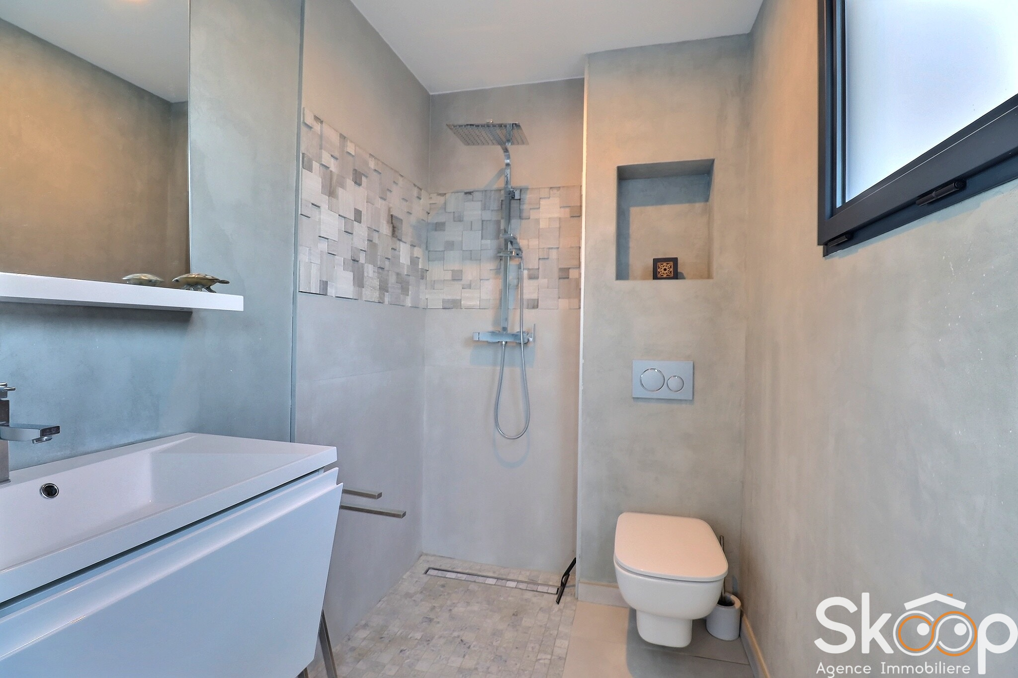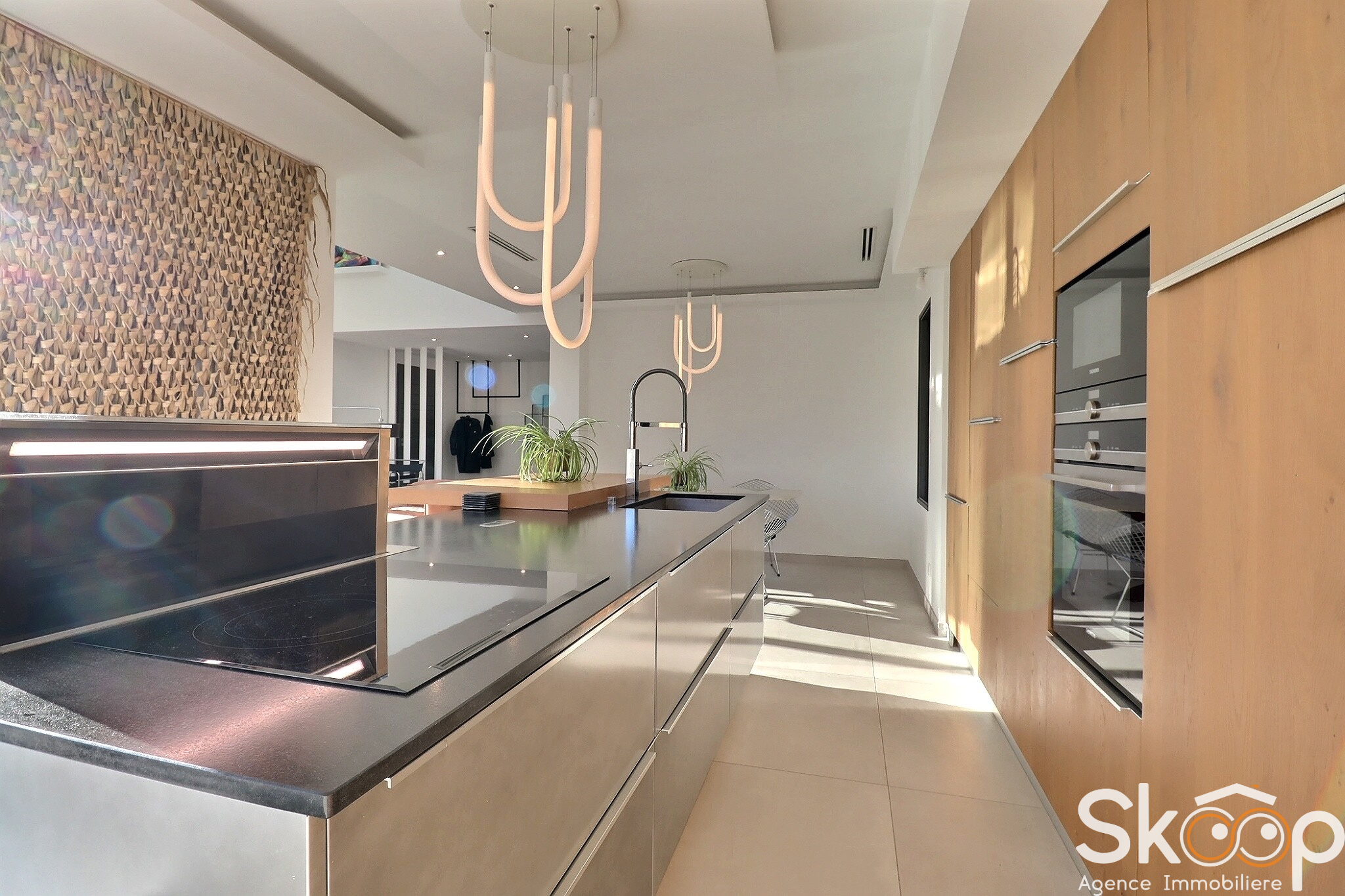 Cette jolie villa BAIGNÉE DE LUMIÉRE est certifiée BBC RT2012, elle dispose d'un terrain de 325m2 est située au CALME dans un lotissement donant sur les oliveraies. Elle est composée comme suit : Au rez-de-chaussée, un SUBLIME double séjour de 65m2 avec une hauteur sous plafond de 5,66m donnant sur cuisine américaine entièrement équipée et aménagée ( Matériaux et mobilier de qualité sont au rdv) donnant sur le jardin et la piscine exposé PLEIN SUD, une belle suite parentale de 15,19m2 avec salle de douche à l'italienne et WC donnant sur le jardin, un WC séparé, une lingerie/buanderie de 7,37m2 et un GARAGE de 15m2.